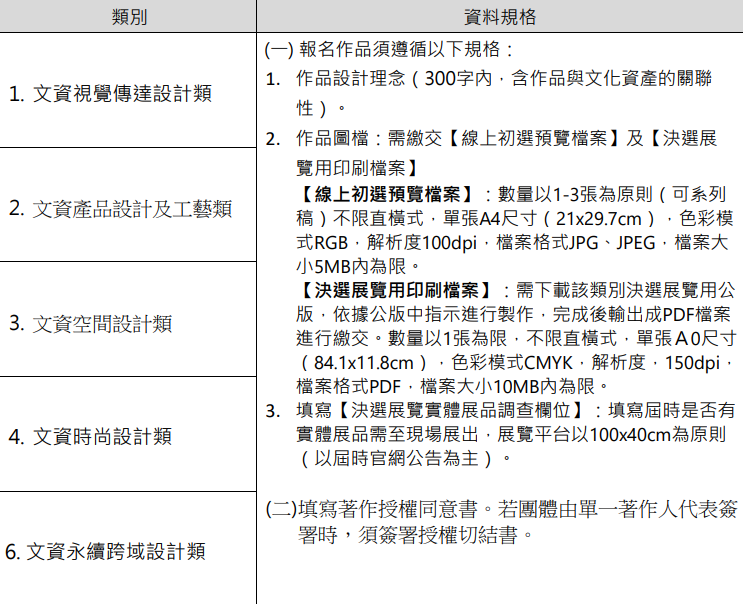 二、線上初選及實體決選:由評選委員會依據各類別進行評選;初選結果將公告於活動