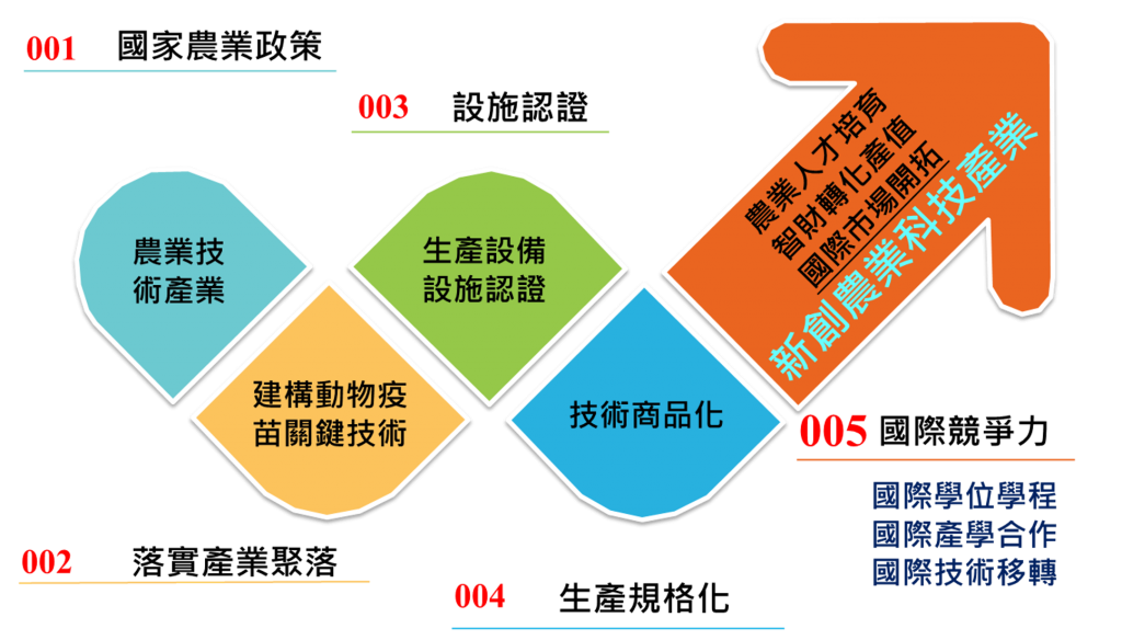 本中心特色為發展動物疫苗佐劑及相關免疫製劑開發關鍵技術及產品,並極力於培養具有開拓國際市場之高階年輕人才,將研發成果商品化、產業化及國際化,引領我國動物疫苗及相關製劑產業成為具有國際競爭力及移動力之新創農業科技產業